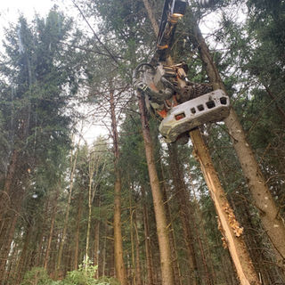 Vollmechanisierte Durchforstung im Hinterforst, März 2022